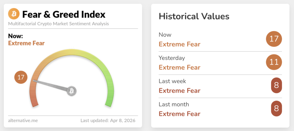Penguatan pasar ini sejalan dengan membaiknya sentimen investor. Indeks Crypto Fear & Greed yang mengukur kondisi psikologis pasar naik ke level 17 dari sebelumnya 11. Meski masih berada di zona “ketakutan ekstrem”, pergerakan ini menunjukkan adanya sedikit pemulihan kepercayaan investor.