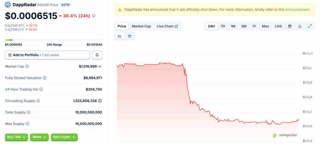 Dalam pernyataannya, mereka menyebut bahwa menjalankan DappRadar kini “tidak lagi berkelanjutan secara finansial.” Setelah mempertimbangkan berbagai opsi, tim akhirnya memilih untuk menghentikan seluruh layanan.