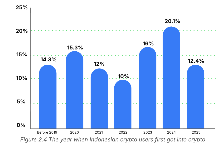 Sebagian besar investor Indonesia mulai masuk ke pasar kripto pada periode bull run 2024. Momentum ini bertepatan dengan Bitcoin yang menembus level US$100.000 untuk pertama kalinya, memicu lonjakan minat investor baru.