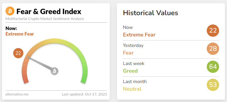 Menurut data Alternative.me, indeks Crypto Fear and Greed, indikator yang mengukur tingkat kepercayaan dan kekhawatiran pelaku pasar, anjlok ke level “Extreme Fear” atau ketakutan ekstrem di angka 22, turun tajam dari posisi “Greed” di angka 64 pada pekan sebelumnya.