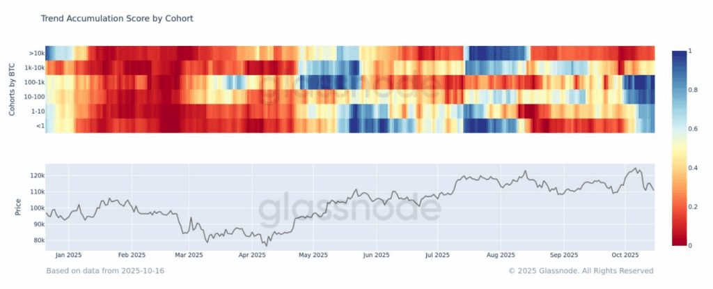Data on-chain mendukung pandangan tersebut. Menurut Glassnode, kelompok pemegang Bitcoin kecil yang memiliki antara 1 hingga 1.000 BTC tercatat meningkatkan akumulasi dalam beberapa hari terakhir, menutupi melemahnya minat beli dari kelompok whale. Pola ini mengindikasikan adanya kepercayaan baru dari investor ritel dan menengah, meski volatilitas pasar masih tinggi.