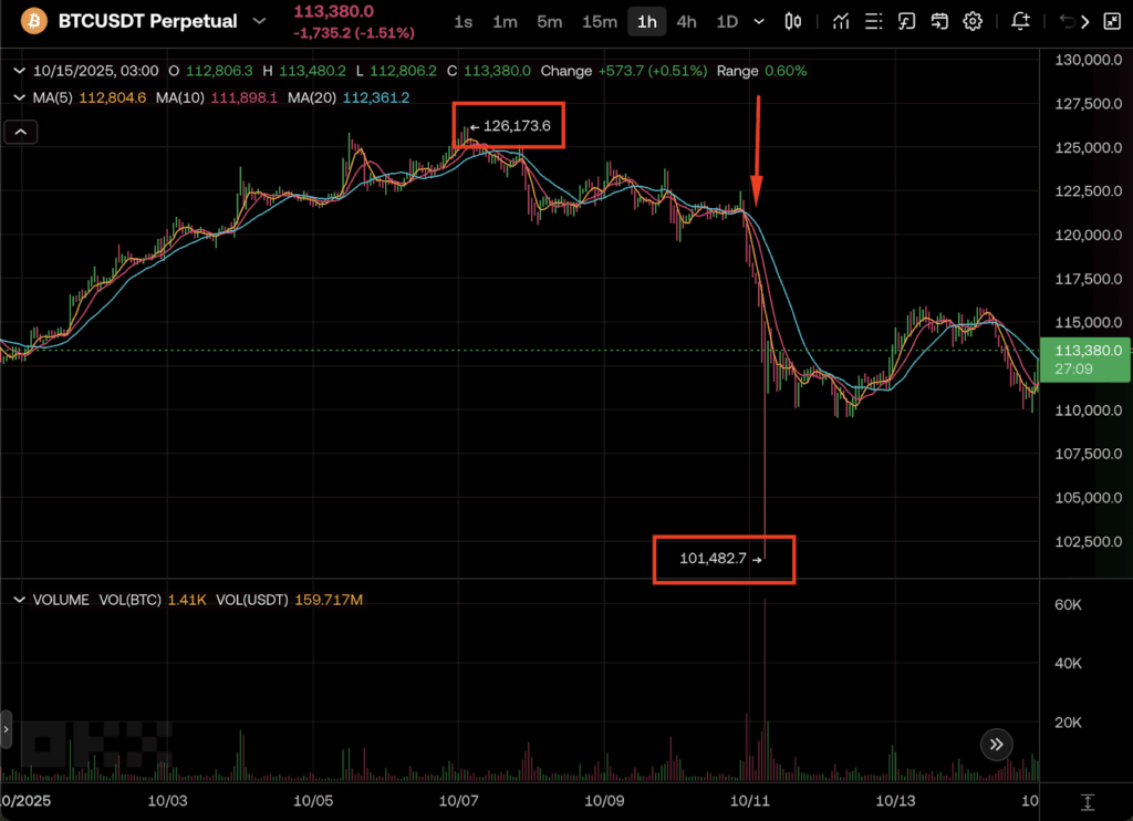 Pasar kripto mengalami guncangan besar pada 11 Oktober 2025, ketika harga Bitcoin (BTC) tiba-tiba anjlok hampir 20% hanya dalam hitungan jam, dipicu pengumuman kebijakan tarif baru oleh Presiden Amerika Serikat Donald Trump terhadap Tiongkok.