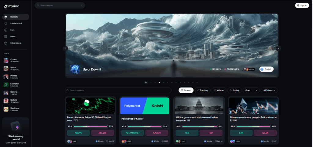Myriad Markets merupakan platform prediction market multichain yang menggabungkan berbagai kategori market dengan tampilan modern dan elemen gamifikasi. Ekspansi ke BNB Chain dan ekosistem EVM membuatnya relevan bagi pengguna Asia, termasuk Indonesia, yang sudah terbiasa memakai BNB dan wallet kompatibel.