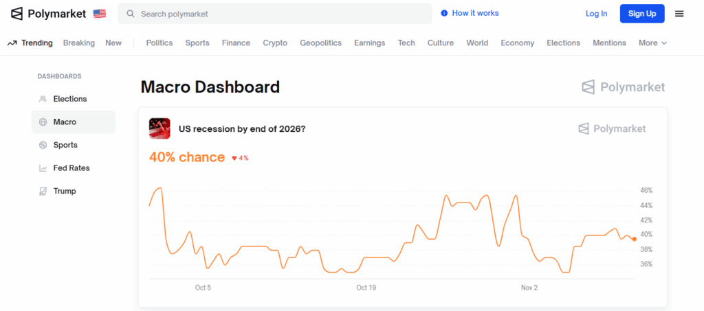 Polymarket dikenal sebagai platform prediction market dengan ratusan market aktif mulai dari pemilu, kebijakan bank sentral, ekonomi global, olahraga, hingga teknologi. Tingkat likuiditas yang besar dan tampilan antarmuka yang sederhana membuatnya sering menjadi acuan untuk membaca sentimen pasar internasional.